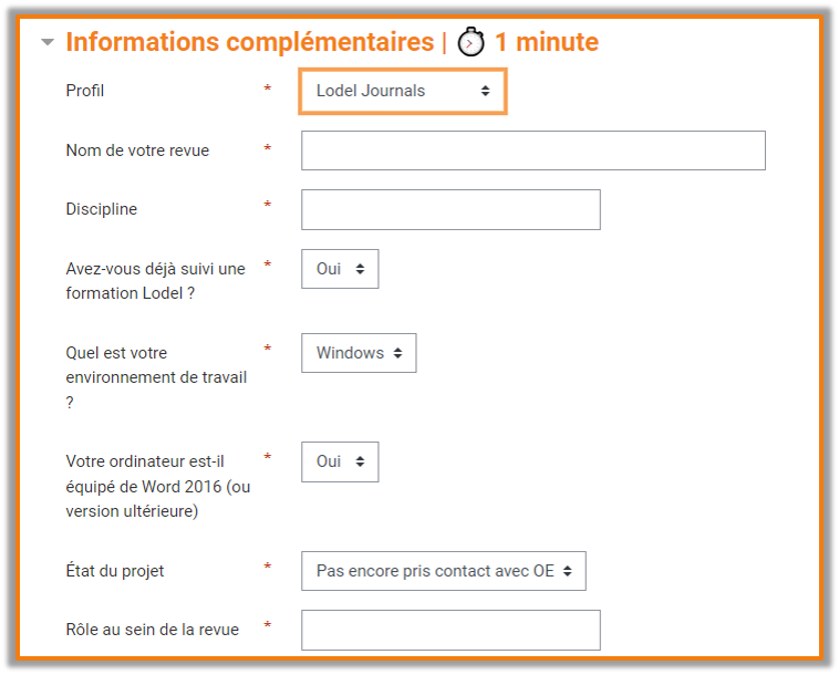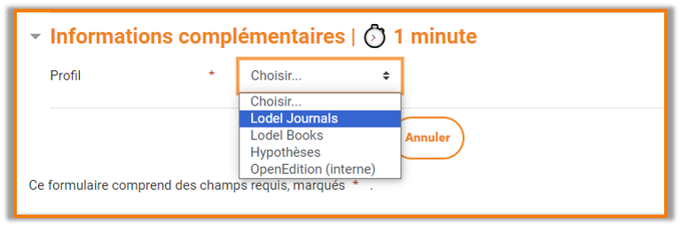 - In the dropdown list Profile under “Additional Information”: select “OpenEdition Journals”.